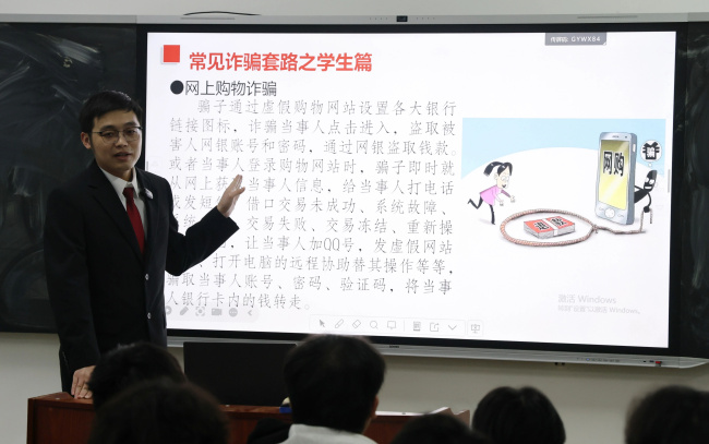 活动现场,王艳博通过“专题讲座+案例剖析+警示视频”的形式,从常见的诈骗套路、诈骗的罪与罚、防诈必备技能三个方面,全方位讲解反诈知识,同时结合近年来高发的校园诈骗典型案例,详细拆解了“兼职刷单”“网上购物”“网络游戏交易”“校园贷”等常见诈骗类型的作案手法和特点。针对学生社会经验不足、防范意识薄弱的特点,还重点分析了诈骗分子如何利用学生的好奇心、虚荣心和侥幸心理实施诈骗,提醒学生们要时刻保持警惕,不轻易相信陌生信息,不随意透露个人身份信息、银行卡密码和验证码,不盲目点击陌生链接,不轻易向陌生人转账汇款。