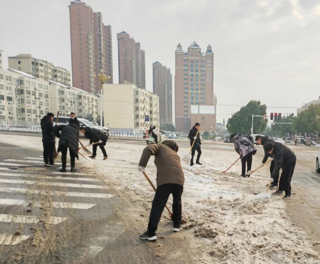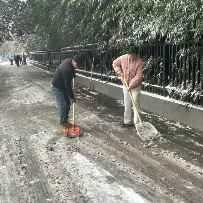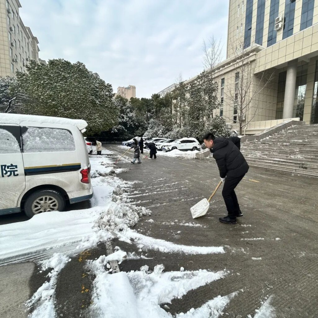 经过数小时的连续奋战,分包路段和院内道路积雪积冰被彻底清除,一条条干净通畅的“平安路”“暖心路”顺利打通。干警们虽手脚冻红,但看着过往群众安全通行的身影、当事人安心走进诉讼服务中心的笑容,脸上都洋溢着欣慰与自豪。