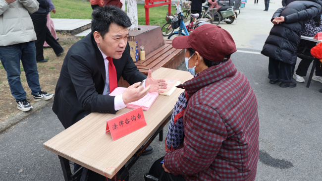 在社区广场咨询台,陈红涛庭长围绕群众日常生活中高频遇到的婚姻家庭、邻里纠纷、民间借贷等法律问题,用通俗易懂的语言向前来咨询的居民释法析理,并给出具体可行的解决建议。